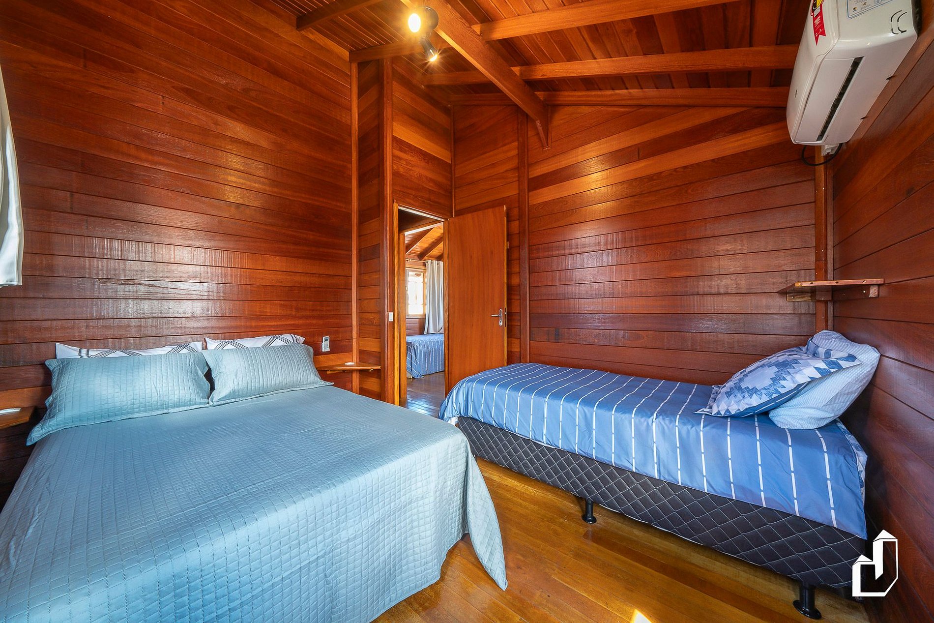01 dormitório com uma cama de casal e uma cama de solteiro, com ar-condicionado;