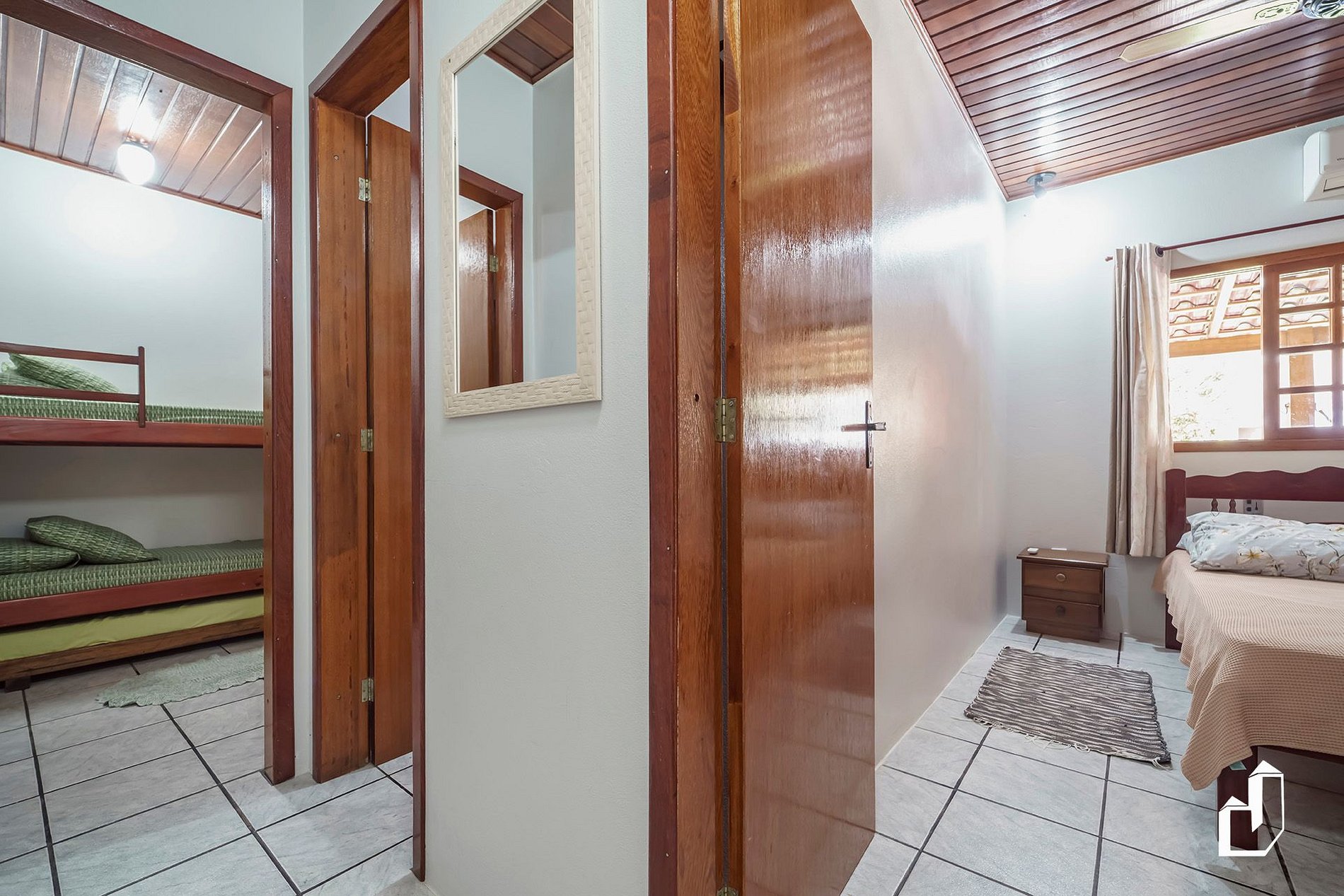 01 dormitório de casal e um beliche com ar-condicionado quente/frio.