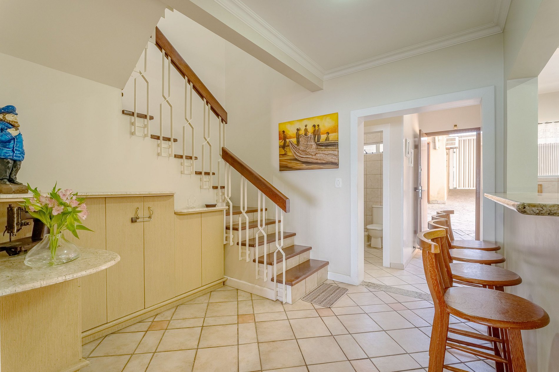 Além da suíte, a casa possui 01 lavabo no térreo e 01 banheiro no andar superior.