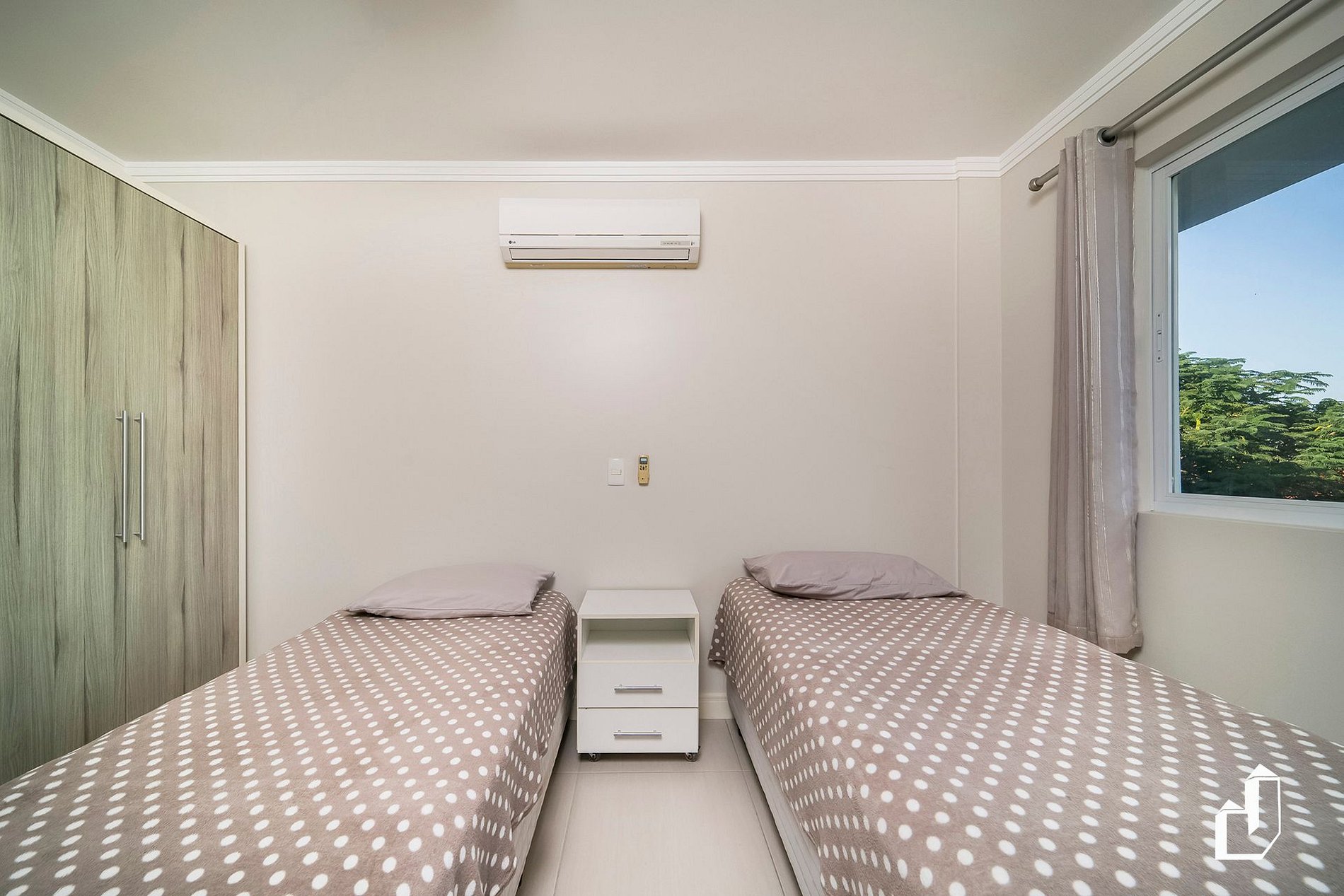 01 dormitório com duas camas de solteiro e uma cama auxiliar com ar-condicionado quente/frio.