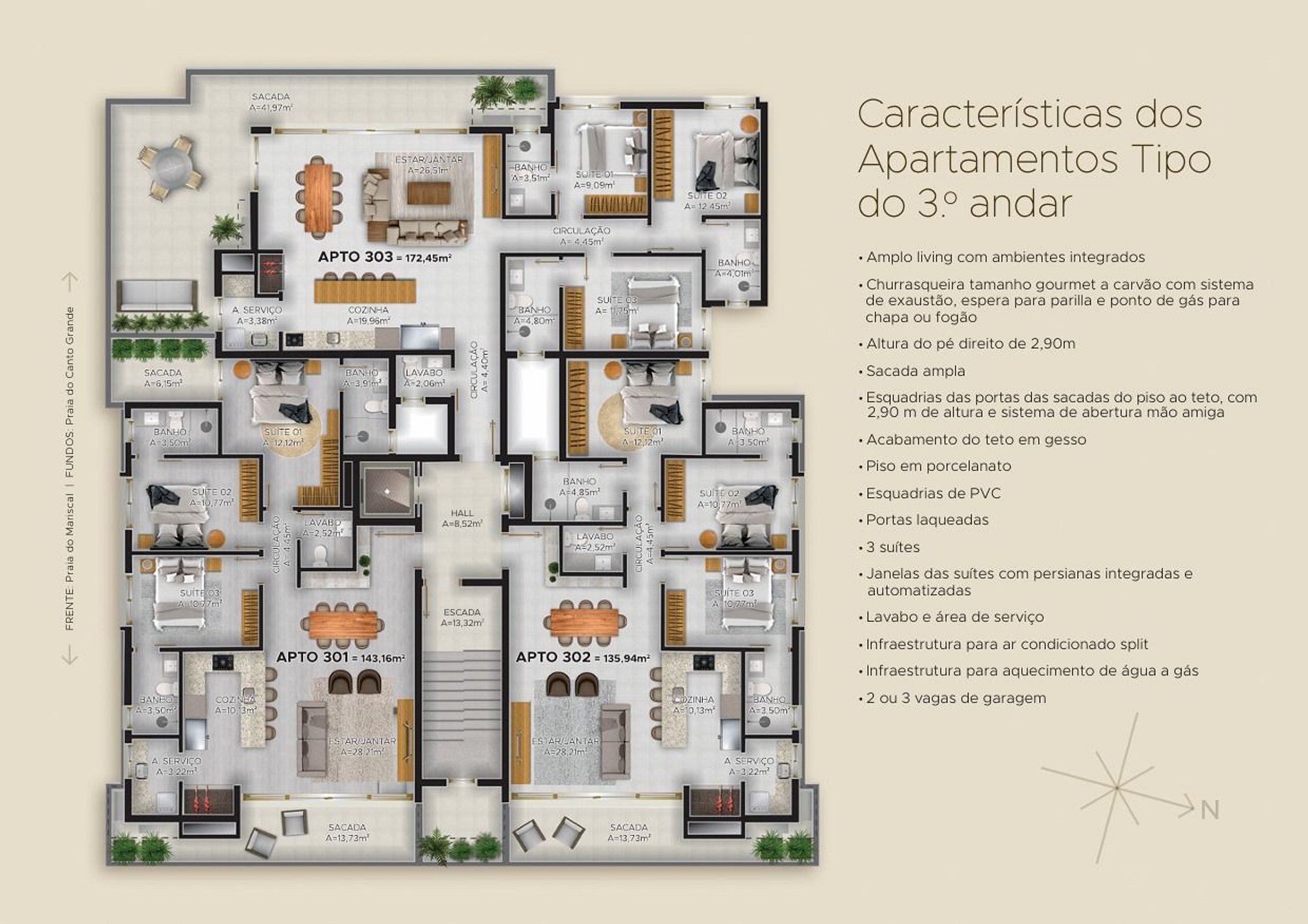 • Infraestrutura moderna: Espera para carregamento de carro elétrico, bicicletário e box de praia individuais.