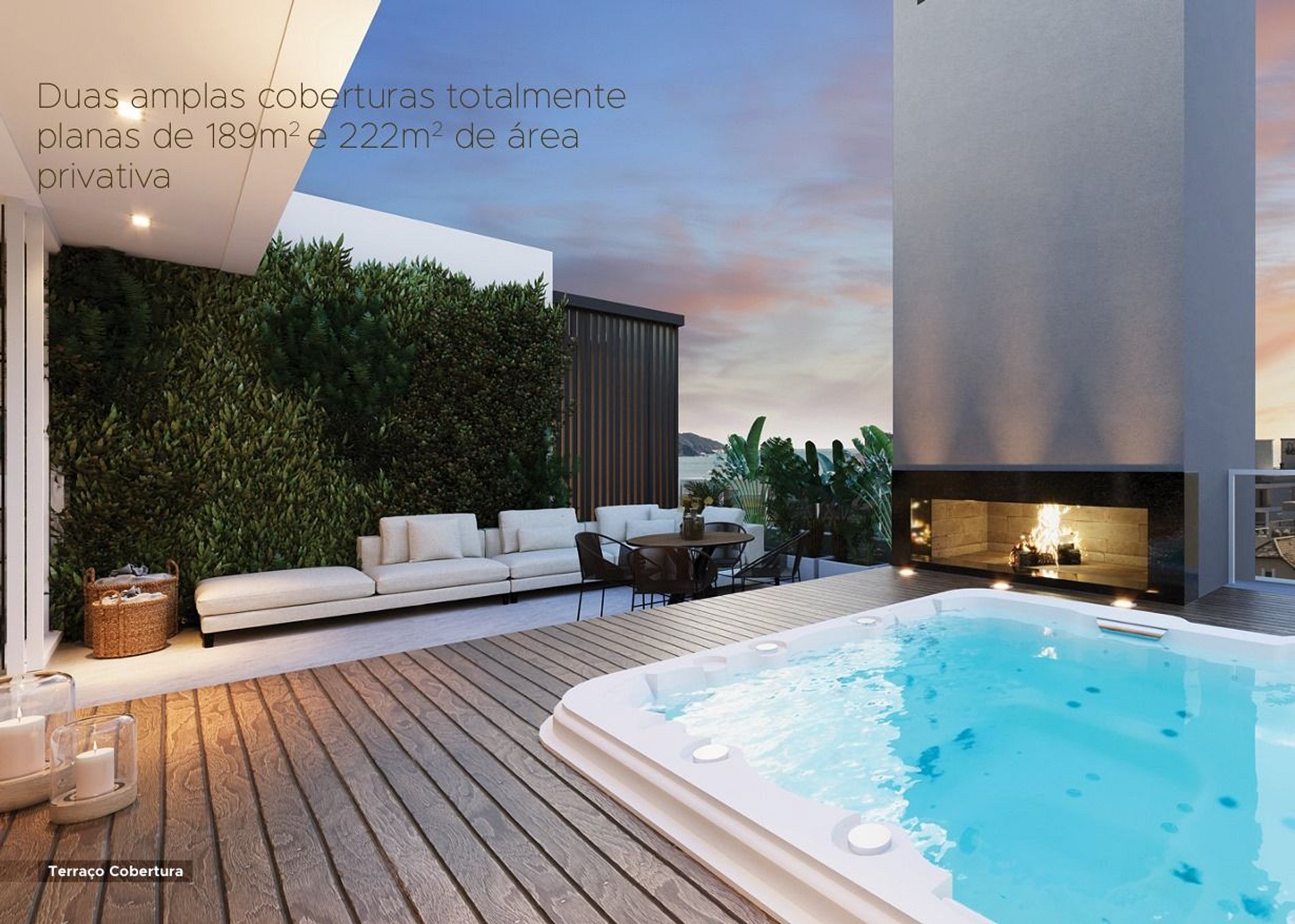• Coberturas deslumbrantes: Totalmente planas e espaçosas, com terraço amplo, SPA instalado e lareira.