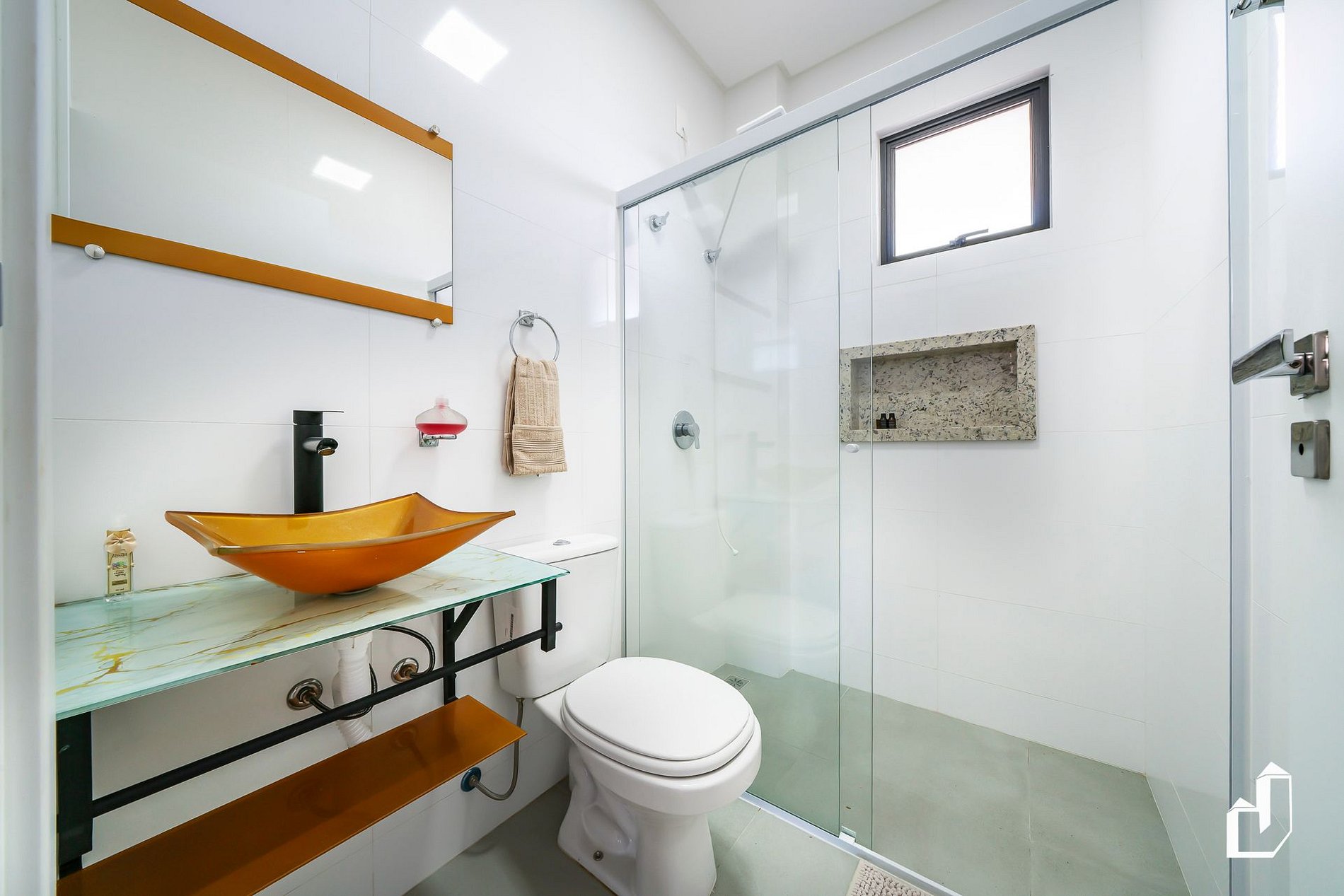 No andar inferior, estão 03 suítes climatizadas e uma sala de estar com ar-condicionado quente/frio, oferecendo ainda mais conforto para sua estadia.