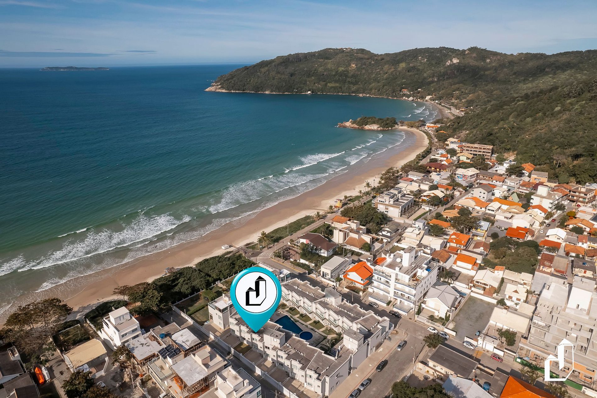 O condomínio oferece piscina compartilhada, áreas verdes bem cuidadas com parquinho e acesso seguro à praia, sem necessidade de atravessar ruas, ideal para famílias com crianças e para quem busca praticidade durante as férias.