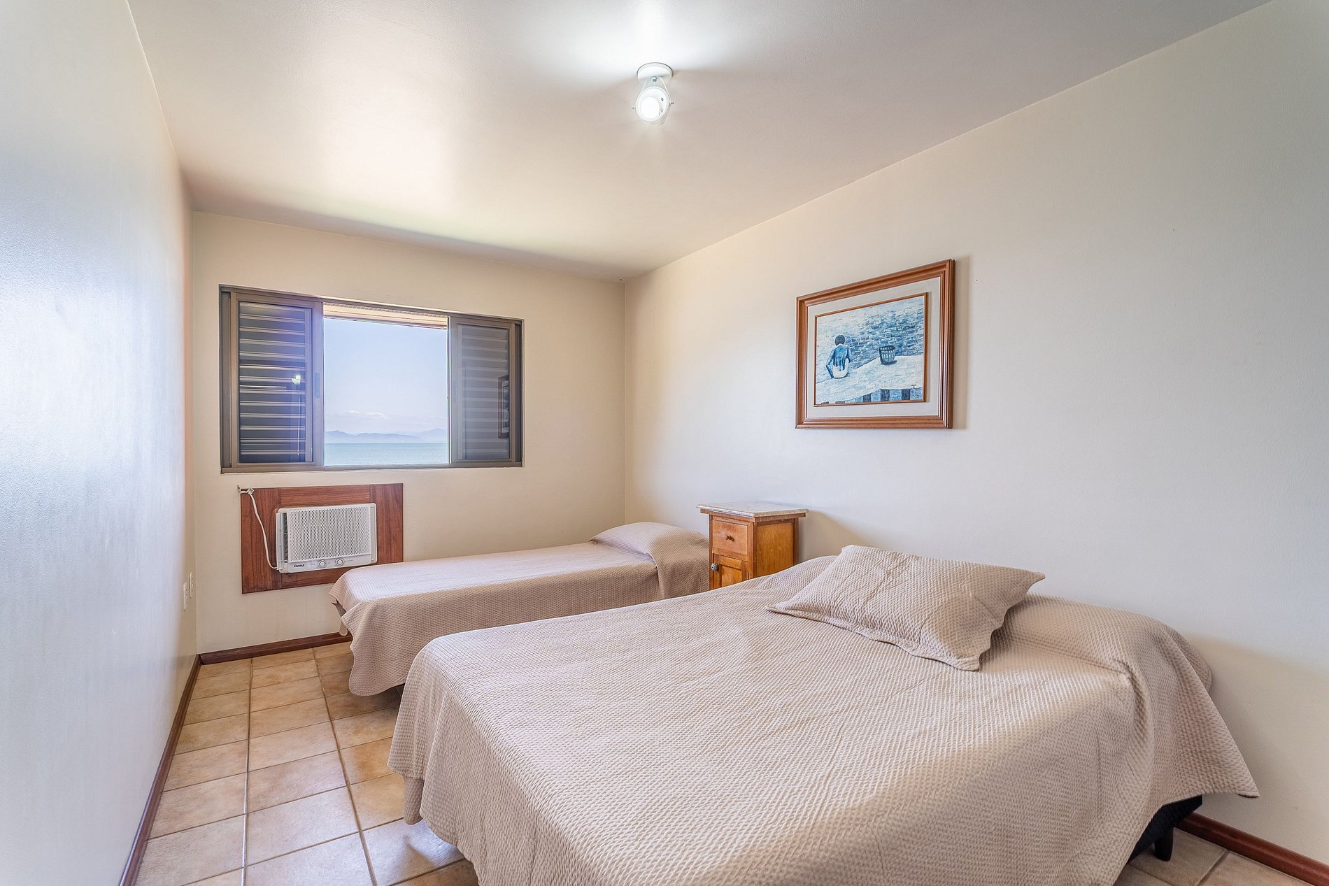 01 dormitório de casal + cama de solteiro com ar-condicionado;