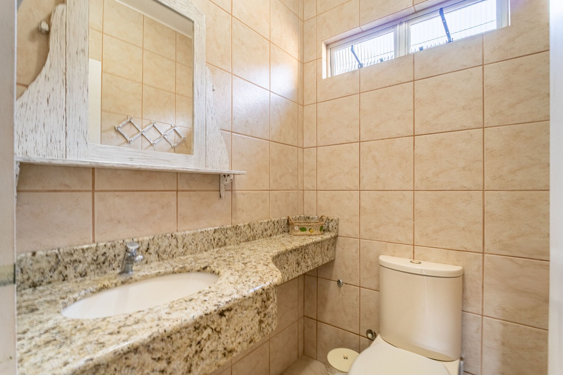 Além da suíte, a casa possui 01 lavabo no térreo e 01 banheiro no andar superior.