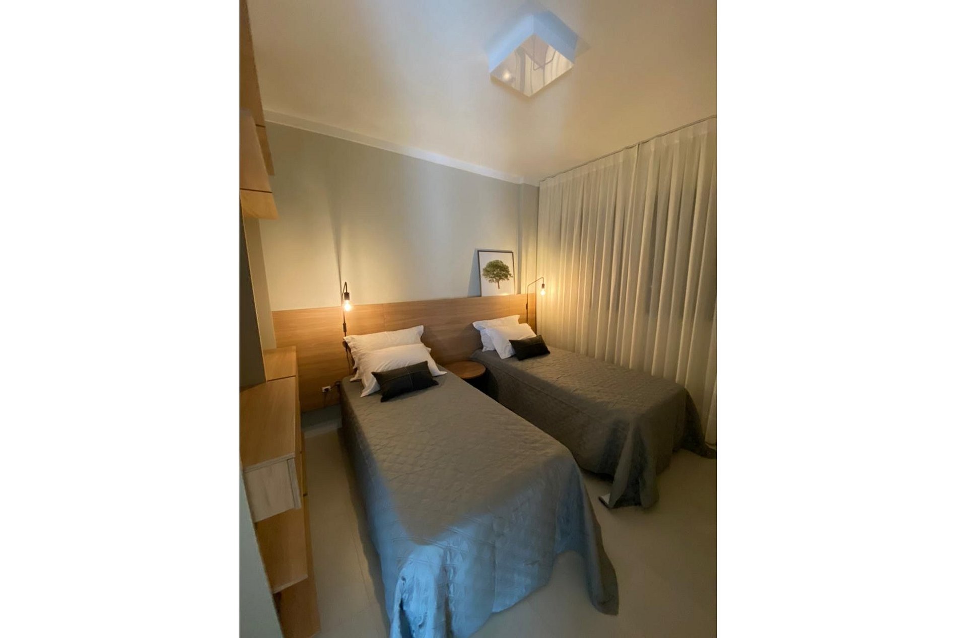 . Com Aquecimento por passagem a gás, louças e metais (misturadores e duchas), equipamentos de ar-condicionado tipo split, esquadrias de alumínio anodizado, persianas nas suítes e dormitórios dos apartamentos, churrasqueira a carvão, instalação de piso porcelanato em todo o apartamento, Hobby box, 02 vagas de garagem cobertas ou semi-cobertas, medidores de água, luz e gás, banheiros entregues com bancadas individuais