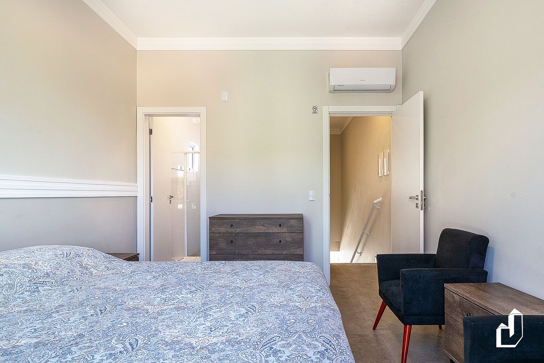 • 1º andar: 02 suítes climatizadas (ar quente/frio), sendo uma de casal e outra com cama de casal e 01 de solteiro.