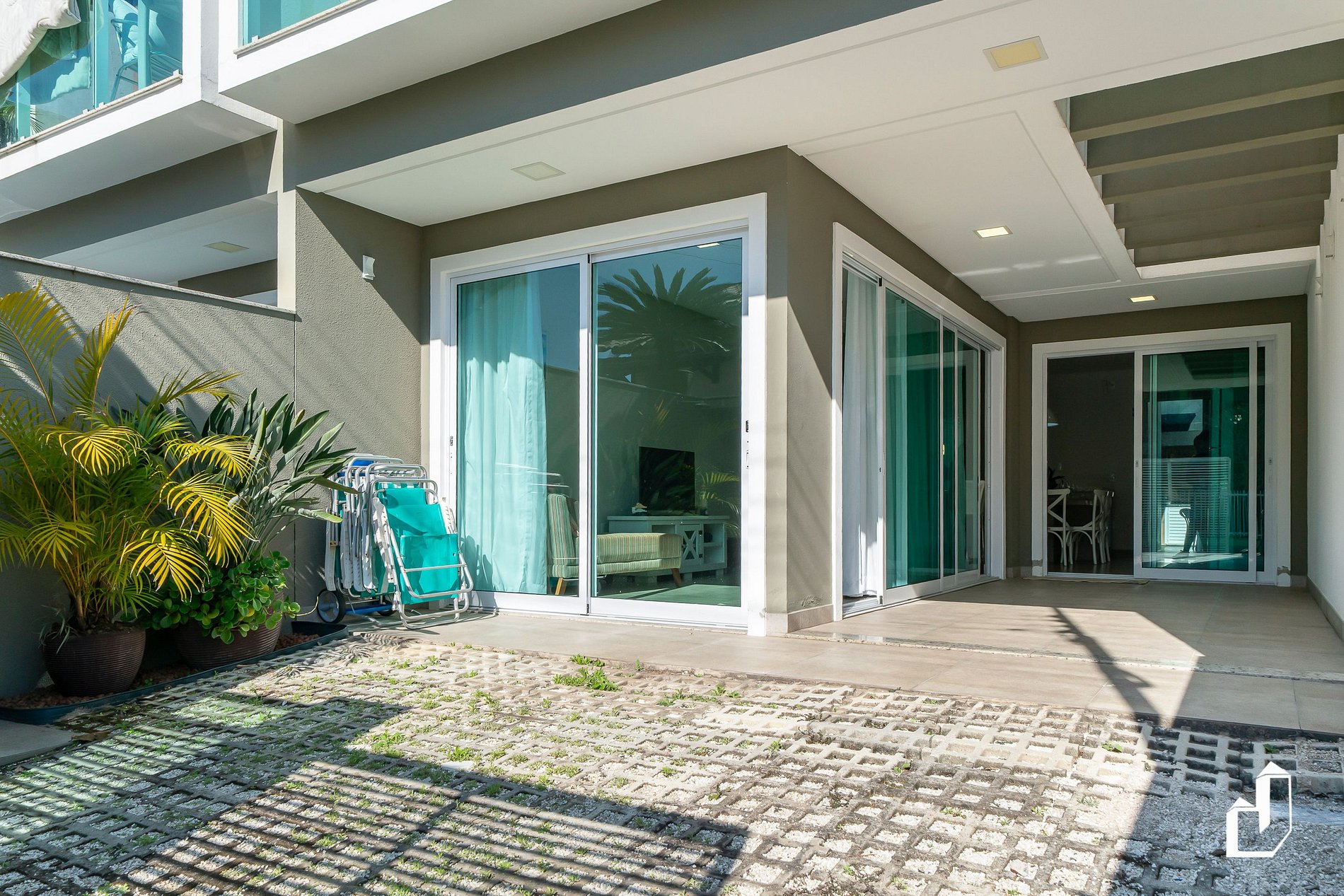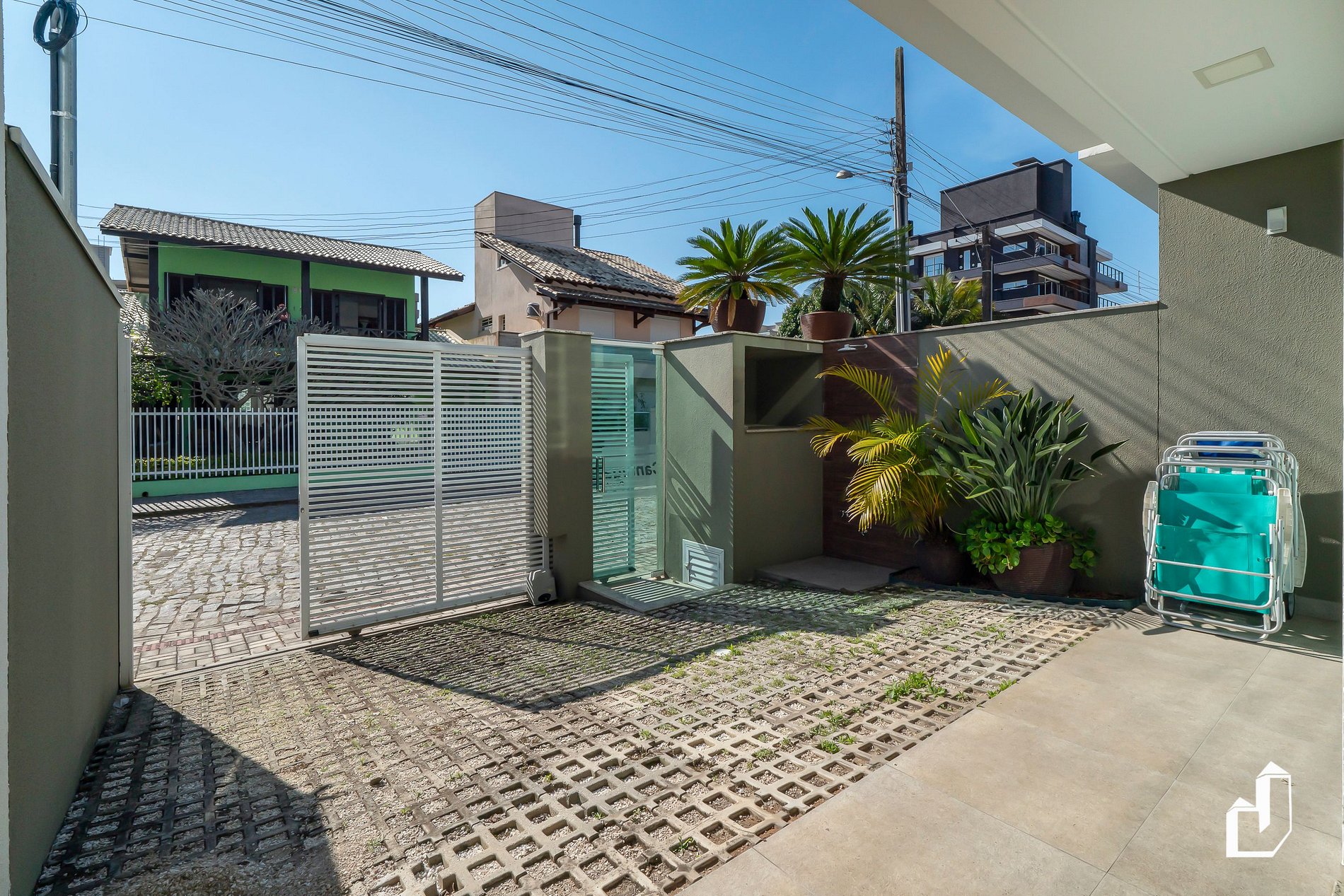 • Térreo: sala de estar integrada à cozinha, 01 banheiro social, 01 dormitório climatizado (ar quente/frio) com duas camas de solteiro, área de churrasqueira, lavanderia e estacionamento para até 02 carros.