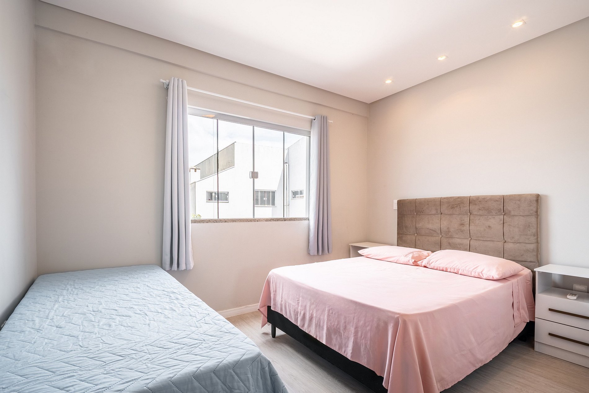 Acomoda até 07 pessoas, incluindo crianças e bebês, contando com 02 suítes de casal climatizadas com banheiro privativo, 02 colchões de solteiro extras e 01 sofá-cama na sala, as roupas de cama estão inclusas para maior praticidade.