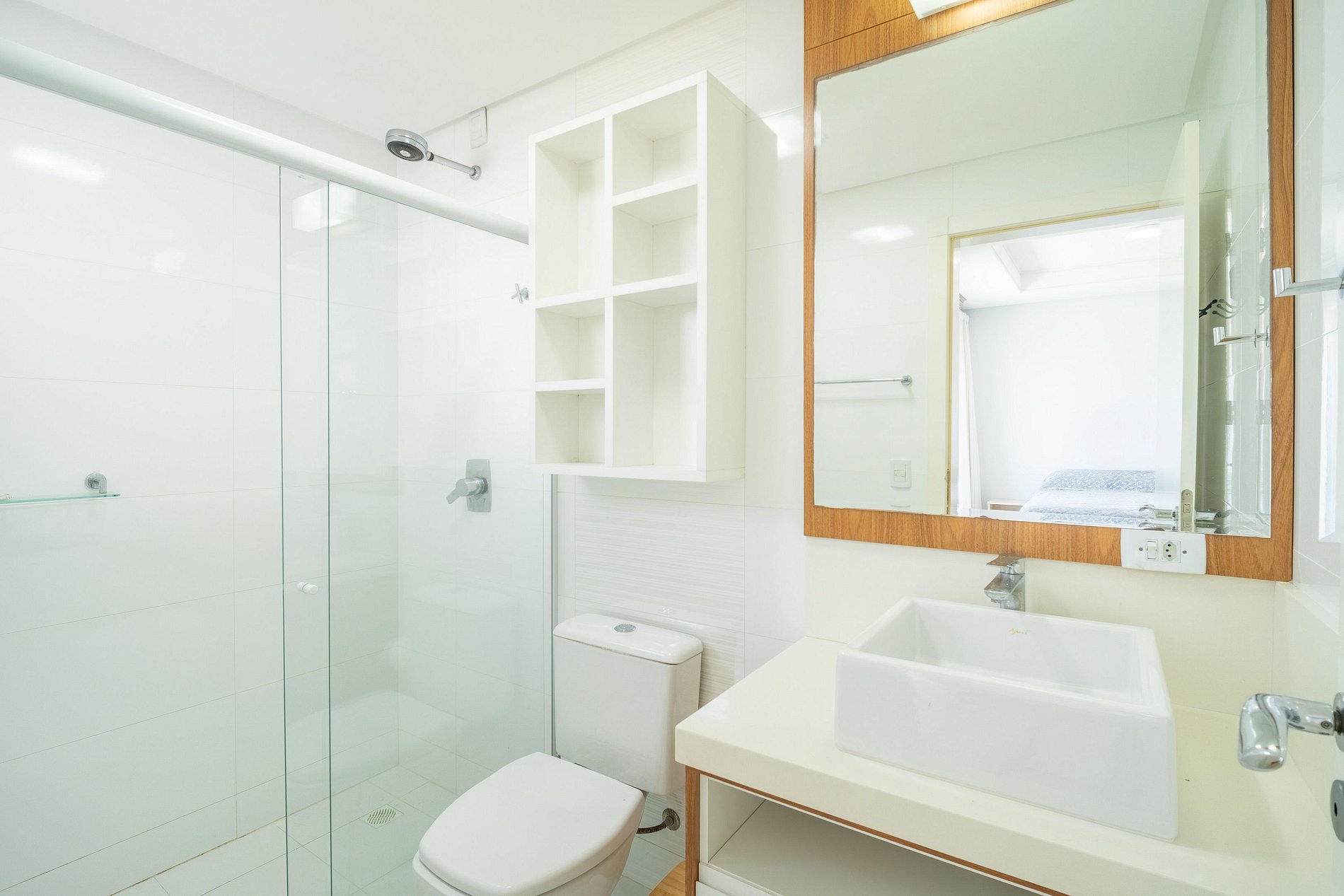 Para aproveitar ainda mais os dias de sol, o condomínio oferece piscina coletiva — o uso requer apresentação de atestado médico. Além disso, o apartamento conta com artigos de praia para sua comodidade.