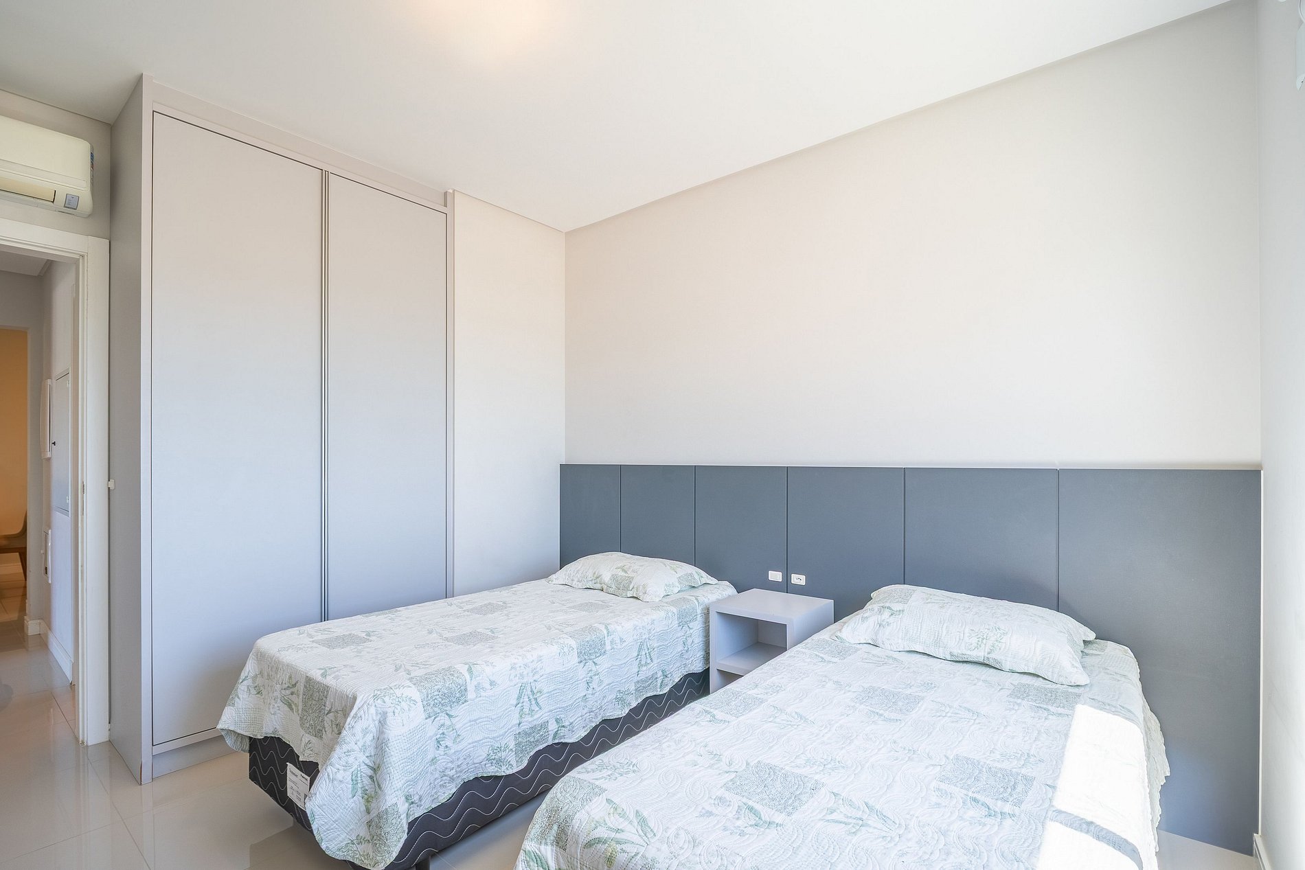 01 dormitório com duas camas de solteiro + 01 cama retrátil de solteiro embaixo, com ar-condicionado quente/frio.