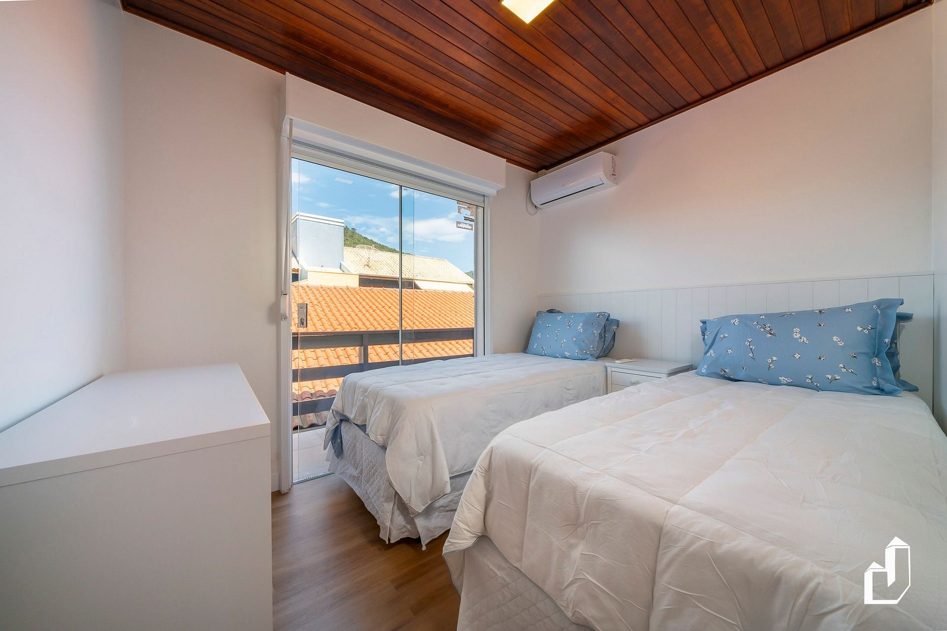 01 dormitório com duas camas de solteiro e com ar-condicionado.