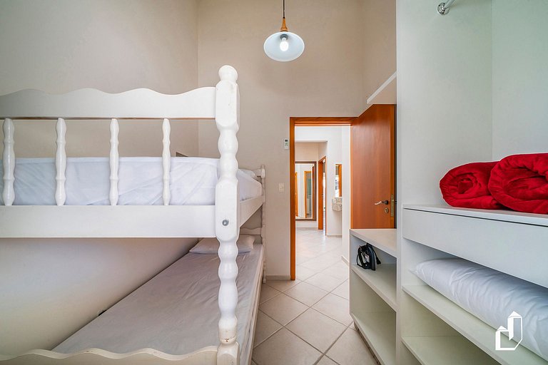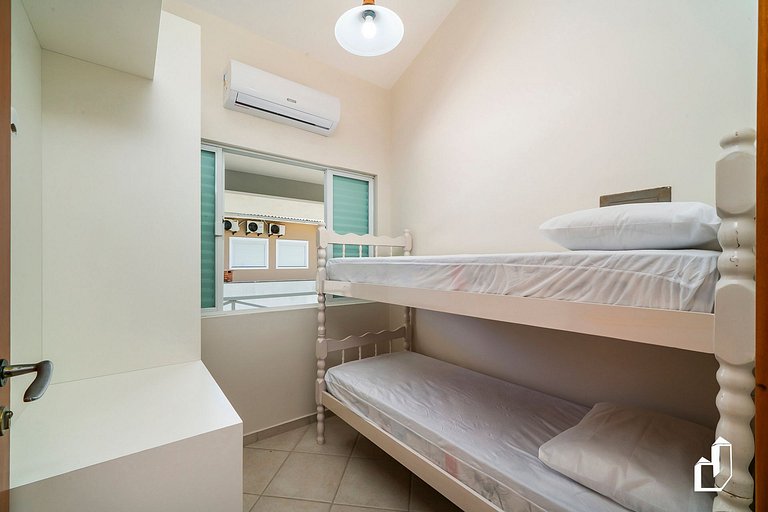 01 dormitório com um beliche e 01 colchão de solteiro, com ar-condicionado;