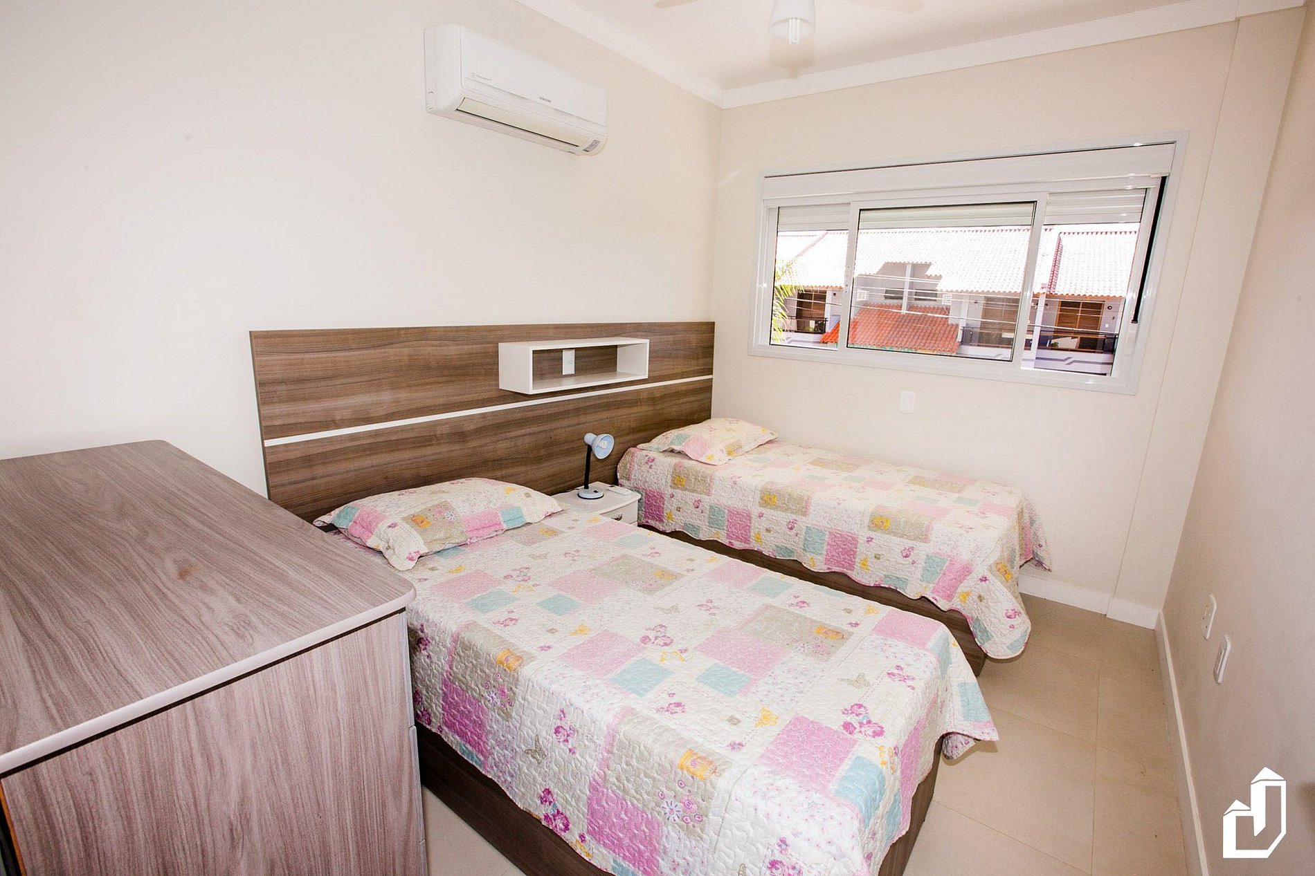 01 dormitório com duas camas de solteiro e ar-condicionado quente/frio;