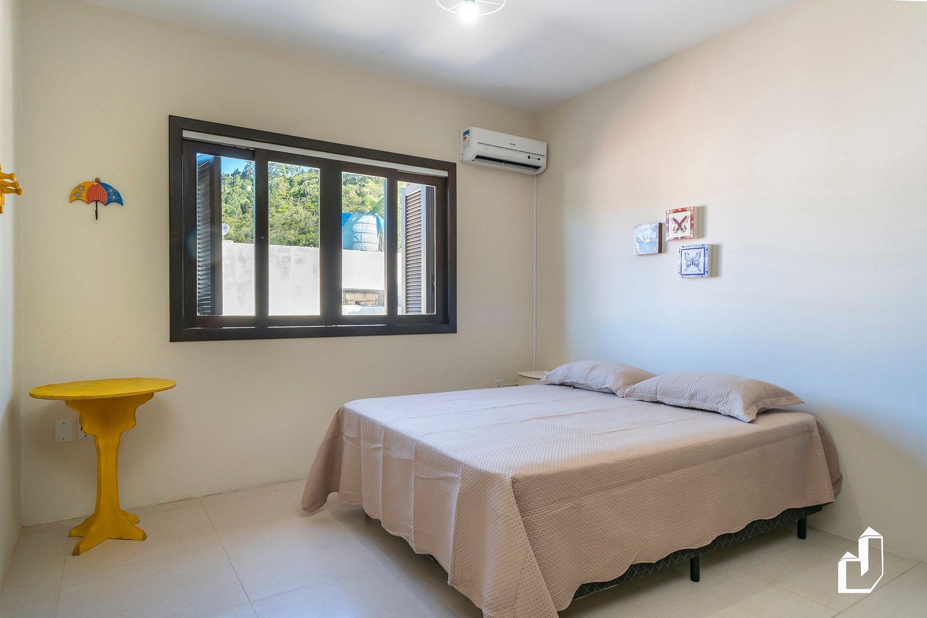 01 dormitório térreo com uma cama queen e uma de solteiro e ar-condicionado frio;