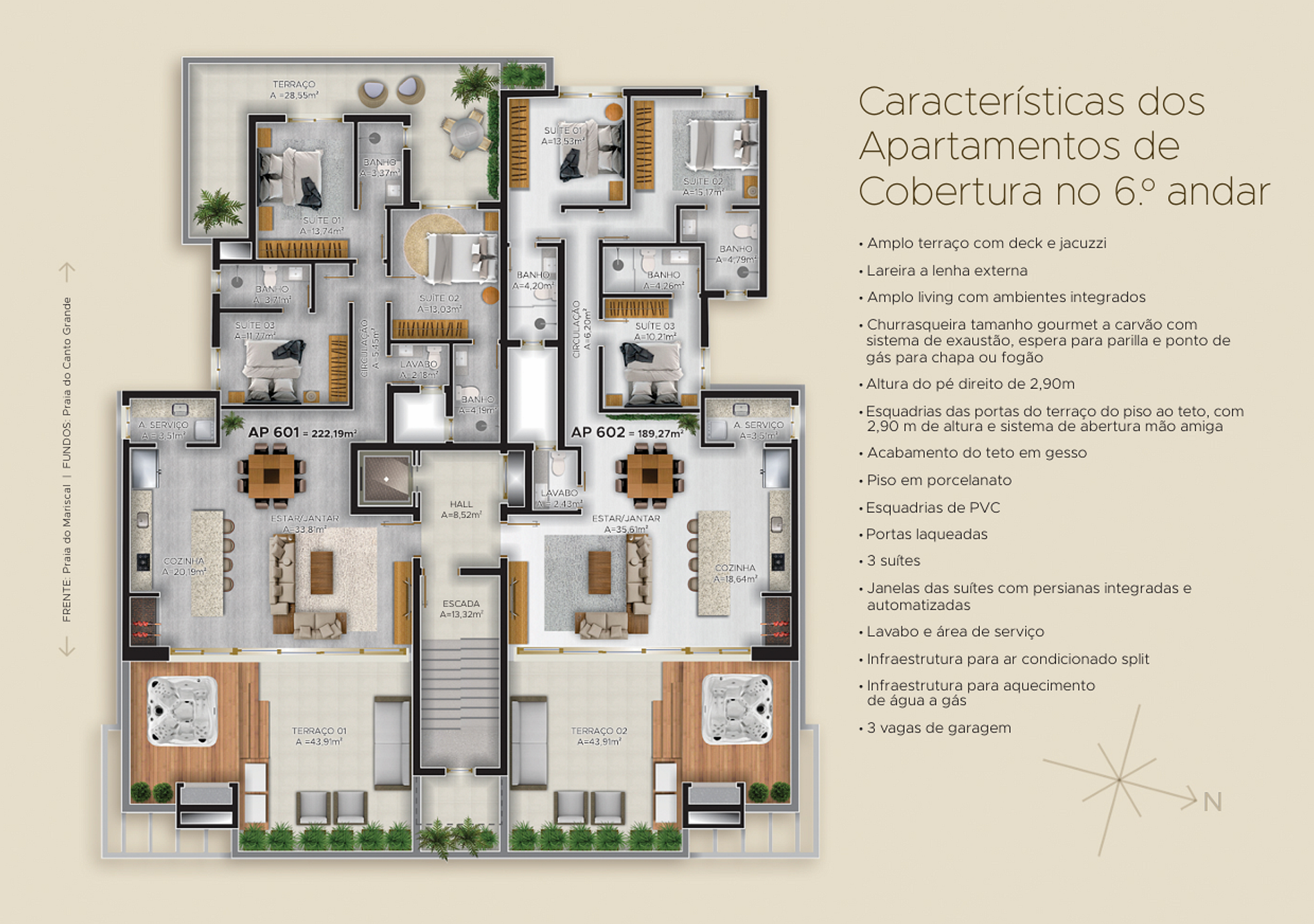• Infraestrutura moderna: Espera para carregamento de carro elétrico, bicicletário e box de praia individuais.