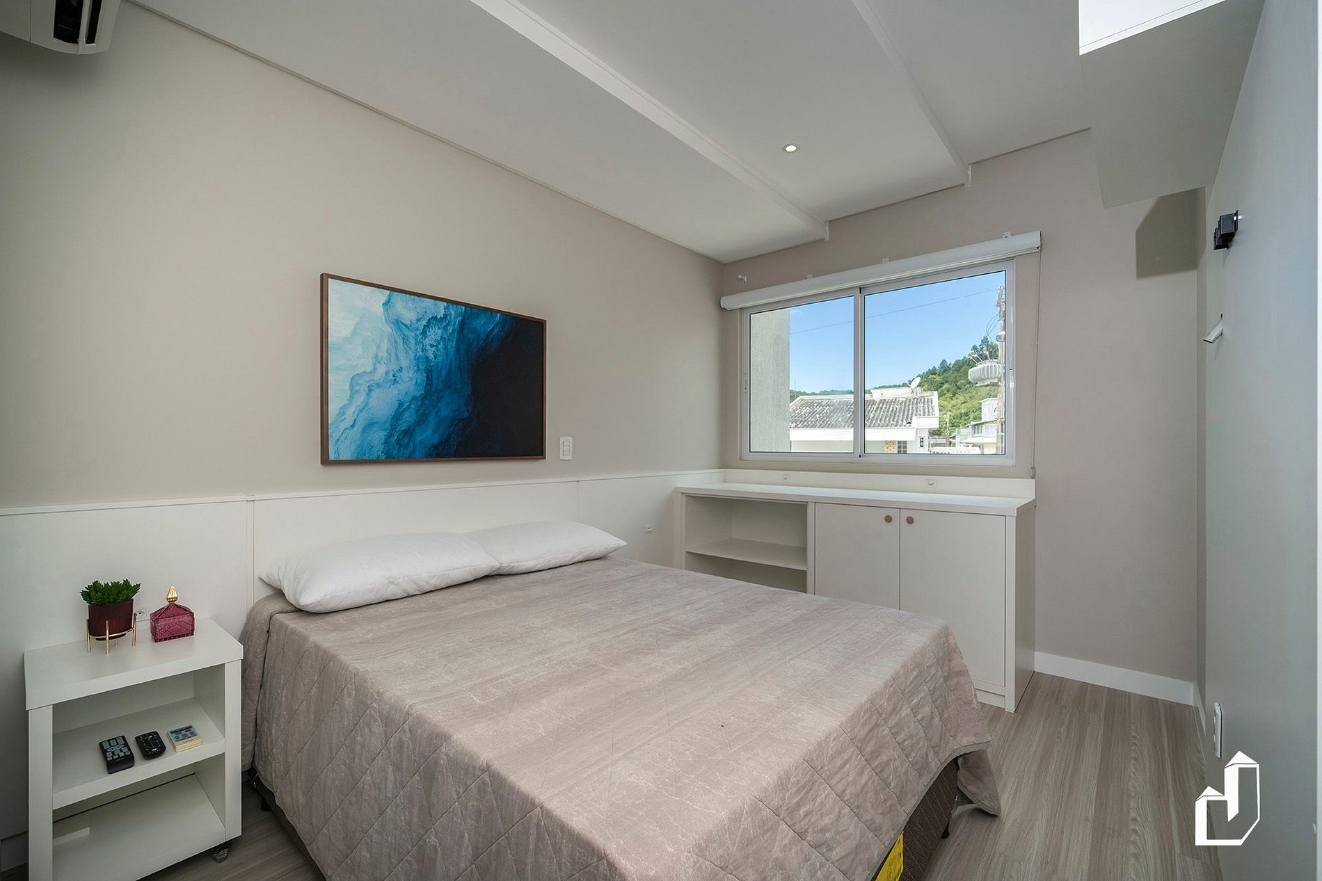 01 suíte de casal box queen com ar-condicionado;