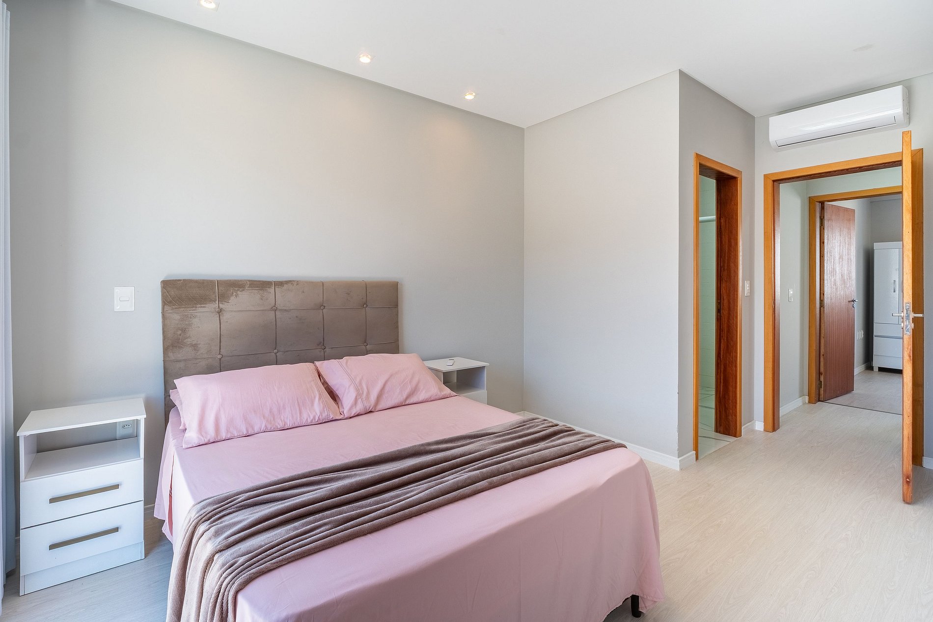 Acomoda até 07 pessoas, incluindo crianças e bebês, contando com 02 suítes de casal climatizadas com banheiro privativo, 02 colchões de solteiro extras e 01 sofá-cama na sala, as roupas de cama estão inclusas para maior praticidade.