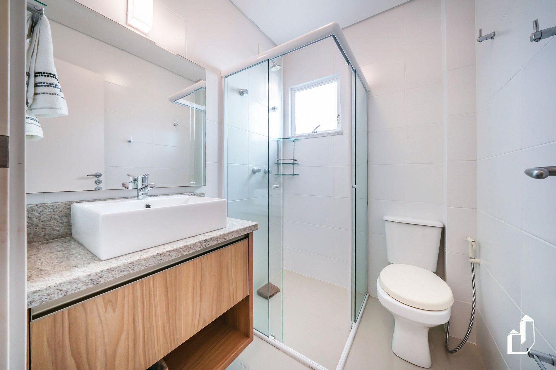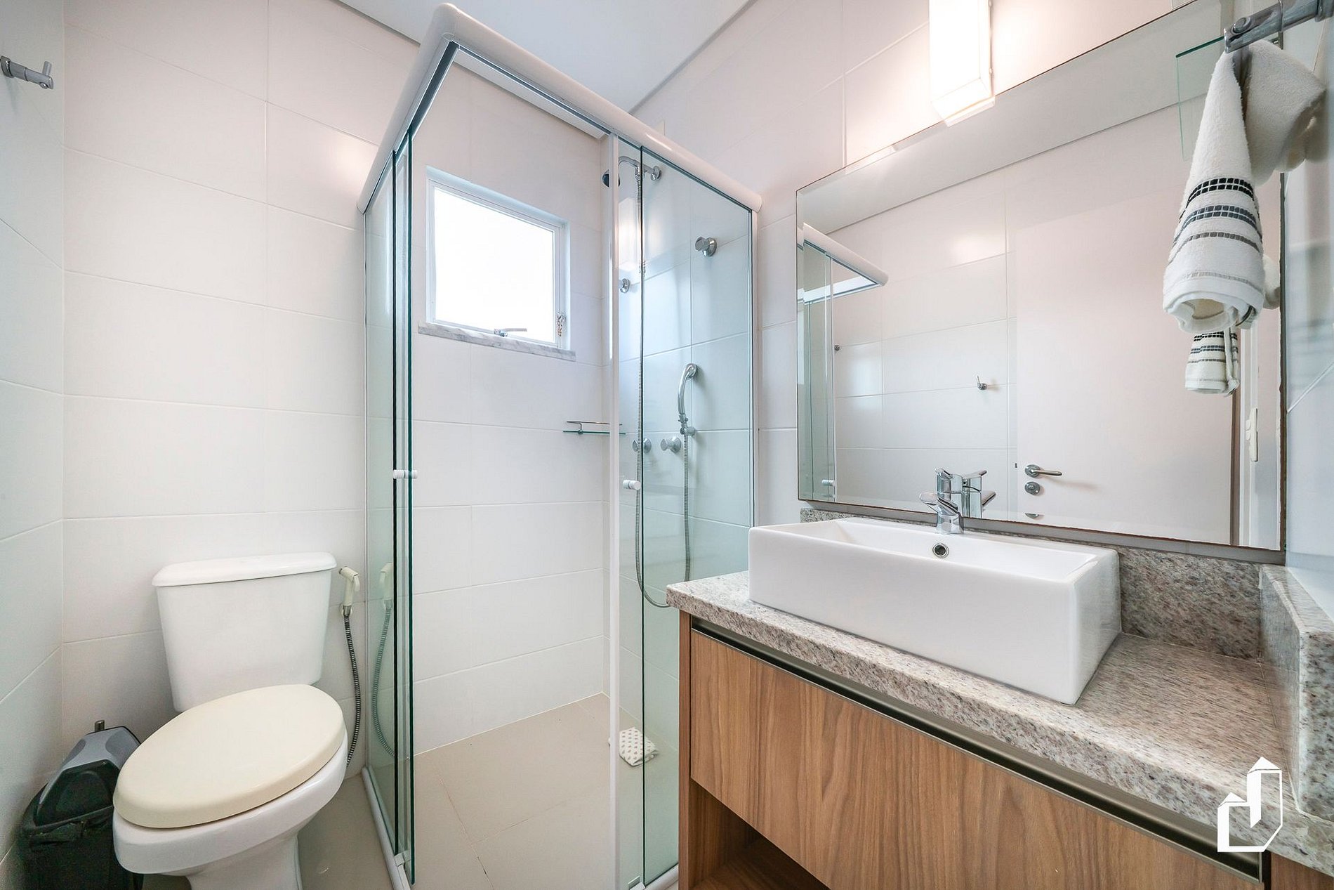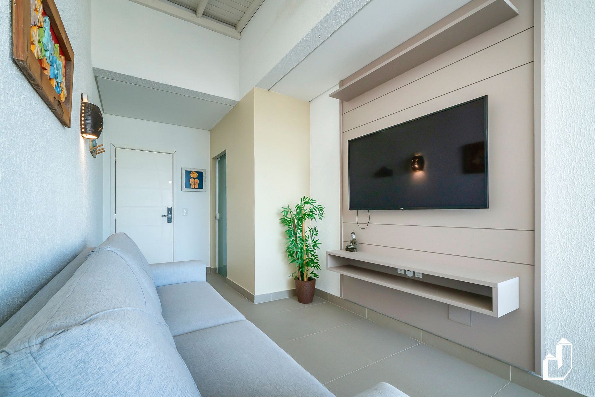 No andar inferior, estão 01 suíte climatizada (quente/frio), 01 quarto adicional com ar-condicionado, 01 banheiro, cozinha completa, sala de estar com ar-condicionado quente/frio e uma sacada ambientada, trazendo ainda mais conforto para o seu descanso.