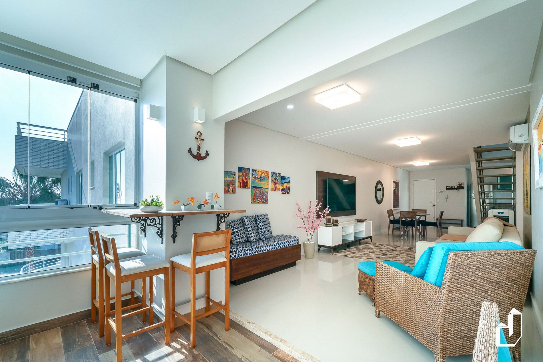Desfrute do melhor de Bombinhas em uma cobertura duplex completa, com 03 dormitórios climatizados, vista lateral para o mar, roupas de cama, toalhas e toda a estrutura necessária para oferecer conforto e praticidade. A opção perfeita para quem busca comodidade, bem-estar e uma localização privilegiada, na Avenida do Coqueiros.